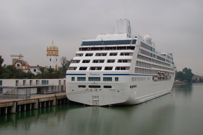 3 de Octubre de 2016 Ayer estaba fondeado en el Muelle de las Delicias de Sevilla, en su primera visita a nuestra ciudad , el lujoso crucero Nautica, buque gemelo del de Regatta e Insignia, fue construido en el 2000, con capacidad para 684 pasajeros.- El lobby de estilo neoclásico recientemente rediseñado, llama la atención por la variedad de telas y muebles. El Nautica tiene cubiertas y galerías diseñadas con madera de teca y un delicado trabajo artesanal de azulejos y mampostería. Para garantizar que la elegancia esté presente durante todo el viaje, dispone de vajilla Villeroy & Boch completamente nueva, de la plata y el cristal más finos y de una singular colección de arte de excelente calidad, que combina lo tradicional y lo contemporáneo con un toque de elegancia En cuanto a los datos técnico : Año construcción 2000 . Última fecha de remodelación 2010. Tonelaje 30.277 TRB . Registro/Bandera Islas Marshall . Eslora 181,17 metros . Manga 26 metros . Capacidad pasajeros 684 . Capacidad tripulación 400 . Camarotes interiores 28 . Camarotes exteriores con ventana 89 . Camarotes con balcón 163 . Suites 62 .Cinco restaurante . Cinco cafeterias . Salón Belleza , peluquería , Spa, Jacuzzi , Casino, Discoteca,Tiendas , Salas de reuniones, Fitness y deportes , Gimnasio Pista de running , Piscinas , entre otros mas servicios y prestaciones .- Confiemos que pronto el sentido