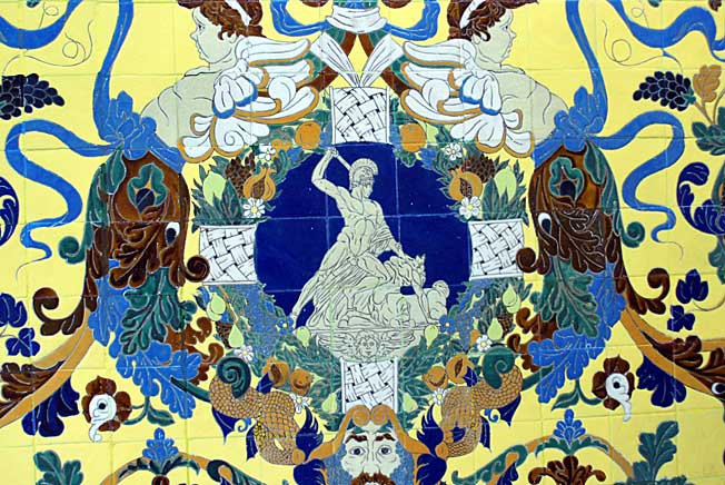 El que ven arriba pertenece a uno de los impresionantes azulejos de la farmacia del Altozano del barrio de Triana de Sevilla , a la que ne su dia le dedicamos un articulo ( Teseo y la saga de los Murillo ) .-