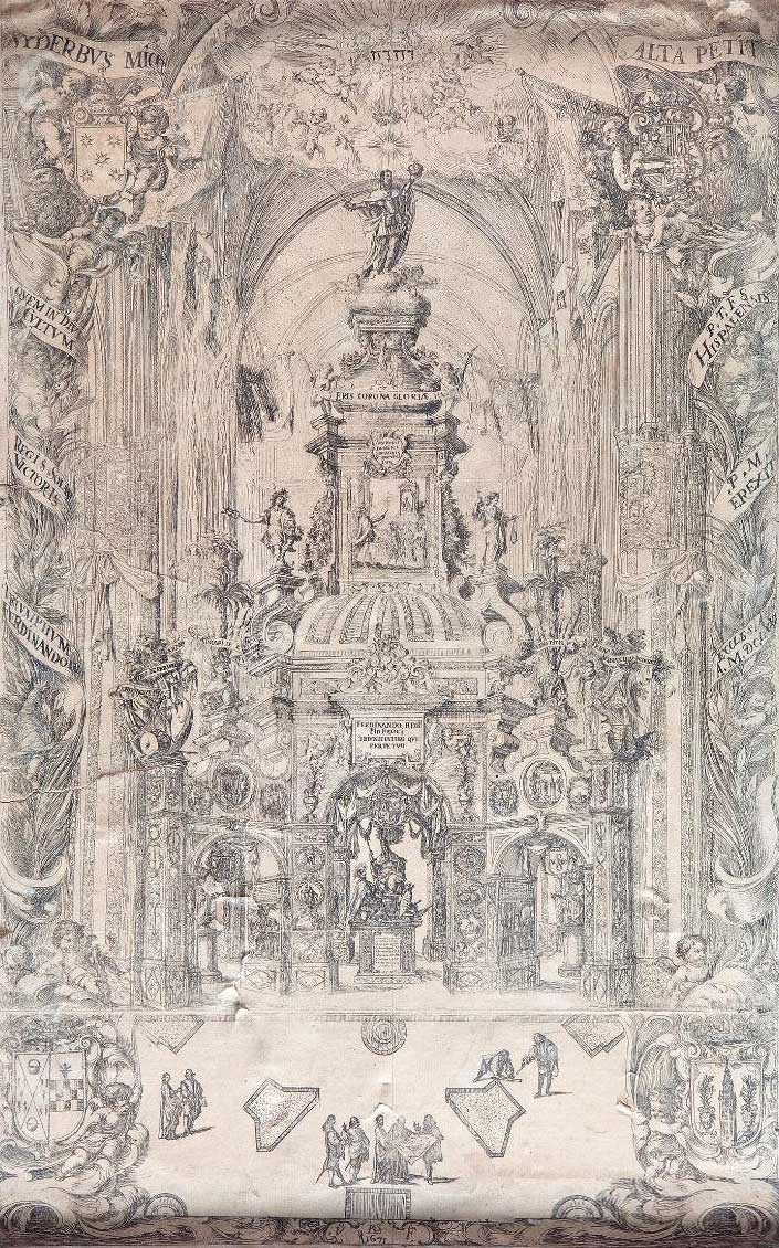 4 de Febrero de 2017 Hagamos una breve historia para situarnos . En 1629, se proponen como candidatos a la canonización al carmelita Juan de la Cruz, al beato Simón de Rojas, al cardenal Cisneros, al inquisidor Pedro Arbués y al rey Fernando III, . No obstante , Urbano VIII estableció la prohibición de canonizar a nadie que hubiera muerto en los últimos cincuenta años. Aplicar este criterio significó excluir a Juan de la Cruz y a Simón de Rojas. Decidió también el papa excluir a quienes hubiesen recibido ya algún tipo de culto, aunque esto viniera ocurriendo desde “tiempo inmemorial”. Con esta otra puntualización, se sacaba, igualmente, de la lista de candidatos, al rey Fernando III. Acordó finalmente Urbano VIII que, en adelante, no se canonizaría más que en tandas de cuatro santos, como mínimo, cada vez. Al mismo tiempo, ordenó que las sesiones en que había que estudiar y decidir sobre cada canonización se distanciaran entre sí mediante períodos mínimos de seis meses. La intención del pontifice era dejar a los españoles que aspiraban a la santidad oficial sin su principal mérito: el de venir recomendados por el Rey Católico.- Todo quedó, por tanto, paralizado, hasta 1644, fecha en que subió al solio pontificio el papa Inocencio X, favorable a los intereses españoles. El nuevo papa revocó las disposiciones dadas por su antecesor, con lo que quedó desbloqueado el proceso de canonización de Fernando III. Pero el desenlace final del mismo sólo se produjo en tiempos de otro papa igualmente favorable a España, Clemente X, quien reconoció el culto público, canonizando a San Fernando, tal dia como hoy, el 4 de febrero de 1671, reinando Carlos II.- La decisión papal fue comunicada a doña Mariana de Austria, madre y regente de Carlos II durante su menor edad. La bula papal autorizaba a celebrar anualmente la fiesta de San Fernando, en todos los reinos de la Corona de España, el día 30 de mayo por sere el día de su muerte ( para que ahora su festividad sirva de comodín o cachondeo según convega al ayuntamiento de turno ) y, excepcionalmente, autorizaba también que se festejara aquel acontecimiento de forma especial dentro del año de 1671, en la fecha que pareciera más conveniente. Inmediatamente la Reina gobernadora hizo publicar el breve y una cédula real de 23 de marzo, enviada a todas las ciudades, para que se celebrara el nuevo culto. El 3 de septiembre de 1672 Clemente X ampliò amplió la veneración de San Fernando a toda la Iglesia universal y lo incluyó en el martirologio romano. - La canonización de Fernando III en el mencionado 1671 se celebró en Sevilla, ciudad reconquistada por el Santo Rey, cuya Catedral fue adornada por diversos monumentos y emblemas realizados por Bernardo Simón de Pineda, en colaboración con el pintor Juan Valdés Leal y el escultor Pedro Roldán.- Se engalanó todo el conjunto catedralicio hispalense con lienzos pintados, incluida la Giralda y el Patio de los Naranjos; se ornamentaron todas las capillas, y en el trascoro se erigió un arco de triunfo con la efigie del homenajeado en el coronamiento, rodeado de figuras alegóricas; además, en el retablo del sagrario se colocó una tramoya con una pintura de Murillo. Este conjunto de monumentos ejerció una notable influencia en la arquitectura de la época .- En la foto superior vemos un dibujo de 1671, de Juan de Valdes Leal del Monumento al Triunfo de San Fernando en el trascoro de la Catedral de Sevilla , obra de Bernardo Simón de Pineda.- |