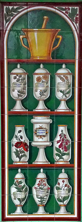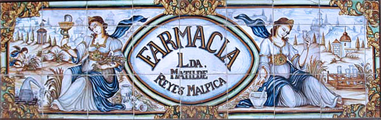Como continuación a nuestra entrega Boticas cerámicas (2) , les traigo estos tres primeros lienzos cerámicos que fueron diseñados por Álvaro Satué Sanz, y creados por Antonio Caro Parra .-
