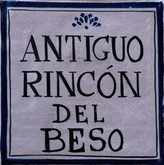 Si usted va por el barrio de Santa Cruz , puede que repare ( o no ) en un pequeño azulejo de nueva factura ( el de la foto superior ), con el texto : " Antiguo Rincón del Beso ", el cual se encuentra concretamente en la calle Reinoso, la que va de la calle Lope de Rueda ( antigua Barrabas ) a Jamerdana . Puede que le cuenten o lea, que si era la antigua calle del Beso o de los Besos, pues dada su estrechez , los novios o amantes se podian besar de balcón a balcon encontrados entre las dos fachadas opuestas de la calle . Oiga, todo muy bonito, todo muy romantico, pero es mas falso que un billete de 7 €.-