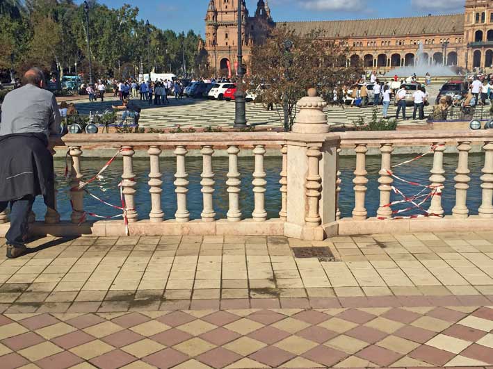 6 de Noviembre de 2017 Hace mas de un año a finales de octubre de 2016 publicaba LA ITV DE LA PLAZA DE ESPAÑA DE SEVILLA OTOÑO 2016 , si las comparan con estas las cinco primeras fotos verán que tras UN AÑO, para vergüenza de al/los que corresponda/n , sigue en el mismo estado de abandono tras el acto vadálico sufrido. No se sabe que es peor si el gamberrismo o la decidia .- Yo se que estas cosas no le importa a nadie de los que le deberia importar . Hace poco aquí estamos que no cagamos con que Lonely Planet seleccione a Sevilla como una de las mejores ciudades para viajar en 2018 . Hemos tenido esta semana el rio que parecia una estación de autobuses de cruceros con miles de cruceristas .- Cuando las piaras de turistas pastoreados por sus sufridos y voluntariosos guias, vengan a nuestra ciudad a uno de sus buques insignias turísticos de total gañote , se encontrarán con esto , amén de un mercadillo digno del charco de la Pava, asi como una calle del Infierno de todo tipo de personajes tocando los mas variados intrumentos, dentro de él , todo ello con una vigilancia y limpieza que brilla por su ausencia .- Repito estas fotos colocadas encima de la linea son unos daños que llevan TODO UN AÑO así .- A partir de aquí he