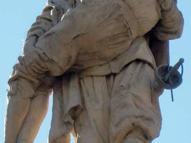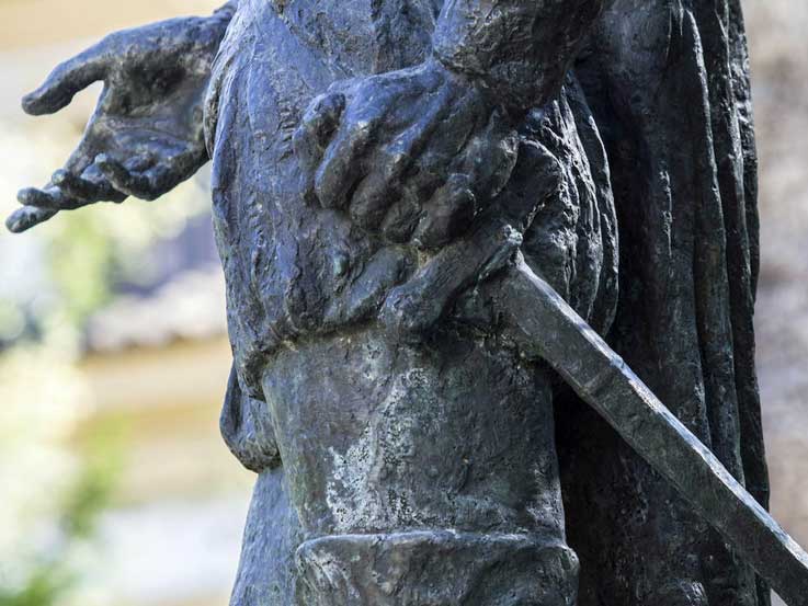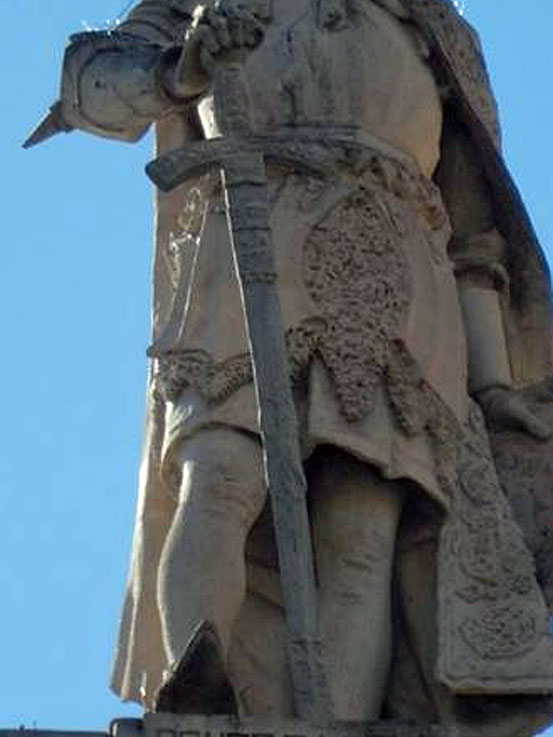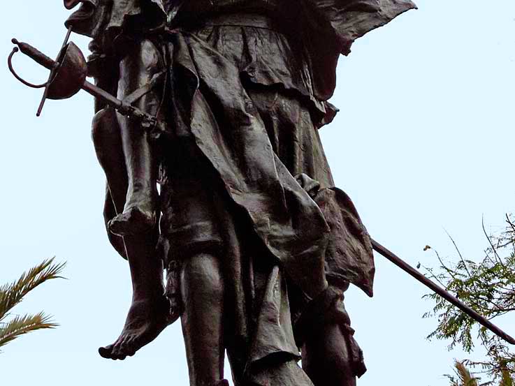 Hoy a finales de 2017, como afortunadamente Sevilla no tiene mas problemas que llevarse a la boca, lo tenemos todo resuelto, Podemos quiere quitar la espada a San Fernando en el escudo de Sevilla porque «simboliza la guerra» ( esto no es coña , ni inocentada es de verdad ) . Oigan y llevan razón estos señores, San Fernando es un santo social y politicamente incorrecto, en vez de ponerles un piso, darle una paga y sanidad de gañote a los moros, los puso de patitas en la calle de forma nada solidaria, racista y xenófobo ...como dirian ellos en su discurso con todo acabado "ista" y "fobo".- Al pobre San Fernando, le quieren quitar su espada "Lobera" que para si la quisiera EMASESA, pues en el cortijo de Cuarto, el Santo Rey la hinco ( la espada se entiende) y al grito de Valeme Señora , brotó agua en el que sería el pozo santo, saciando a sus sedientas huestes y mesnadas , antes de la reconquista de Sevilla que fue por asedio, y no por batalla . Igual como nuevo escudo de nuestra ciudad, ponen en su lugar a Fernnado III , con San Isidoro y San Leandro, sentados en un velador simbolo y emblema de la Sevilla actual de inmovilidad, y ruidos ciudadano , pues somos el mayor chiringuito de España , y donde estaba la espada le colocan una litrona .- Sevilla es una ciudad mas espadachina que Errol Flynn , lo es tanto que hasta nuestro excmo sr alcalde lleva por apellido Espadas, que como se decuide Podemos pide que hasta tambien se cambie de apellido . Aunque por otro lado los podemitas hispalenses tambien podrían invitar a su jefe Iglesias a cambiarse el suyo, porque igual molesta a otros credos, y resulta excluyente .- Pues bien, como hace cada mañana mi amigo Antonio Jimena que nos pone a prueba si conocemos ( o no ) cada rincón de Sevilla a un nutrido grupo de "guasá" y de sevillanos, aqui les dejo un trozo de los monumentos con espadas que según los podemitas "simbolizan la guerra" , y como hizo el Papa Pio IX ( inventor de los pasteles que llevan su nombre ) , les da por coger una radical y arrancar todas las espadas sevillanas .- Los resultados al final y mídanse a si mismo en su conocimientos de sevillania .-