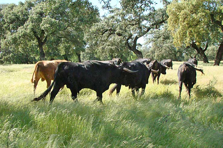 10 de Mayo de 2017 Ayer tuve la oportunidad de visitar la Dehesa Fria en el termino de Constatina - Sevilla- donde pasta la ganaderia de reses bravas de Dª Dolores Aguirre, donde me atendieron de una forma exquisita . Ver : http://www.fincadehesafrias.com/ganaderia/ .- Para acabar con todo este absurdo movimiento organizado y finaciado antitaurino , asi como los animalistas que a veces son mas animales que los propios animales, yo invitaria a las ganaderias que los invitaran a todos estos individuos/as a visitar una ganaderia de toros donde en su habitat toro y dehesa, son dos páginas de una misma hoja . Como viven, donde viven, como los cuidan, como los alimentan, vigilan, la asistencia veterinaria que reciben , obligándolos a hacer ejercicio, respetando sus horas de descanso; en su suma como los miman durante años, ya lo quisieran para ellos cualquier mascota hogareña . Sencillamente viven como auténticos reyes .- Por otro lado , sin darnos cuentos nos fuimos metiendo con un todoterreno en los diferentes corrales , y cuando uno tiene a escasos metros a un toro de mas de 600 kg , con dos cuernos que recuerda a un perchero de una casa antigua , teniendo por capote la simple puerta de un coche, les confieso que la palabra miedo se queda bastante corta, mas aún cuando te mira a los ojos unos de esto bellos animales con su increible poder . Les aseguro que se te paraliza el cuerpo con un indescriptible escalofrio por la espalda, y la boca completamente seca .- Tras un largo recorrido a un servidor, tardó en entrarle el cuerpo en caja , y llegue a plantearme que lleva a un torero a ponerse delante de un toro, les aseguro que el valor no es sufiente, el cerebro les tiene que funcionar de una forma diferente al resto de los mortales .- Las fotos se quedan cortas para describir la belleza de estos astados que son lidiados en San Isidro o corren por la calle de la Estafeta . El TORO, nuestro TORO , forma parte de nuestro patrimonio nacional .- Video en 360º . Moviendo el ratón sobre la imagen es como si estuviera alli |