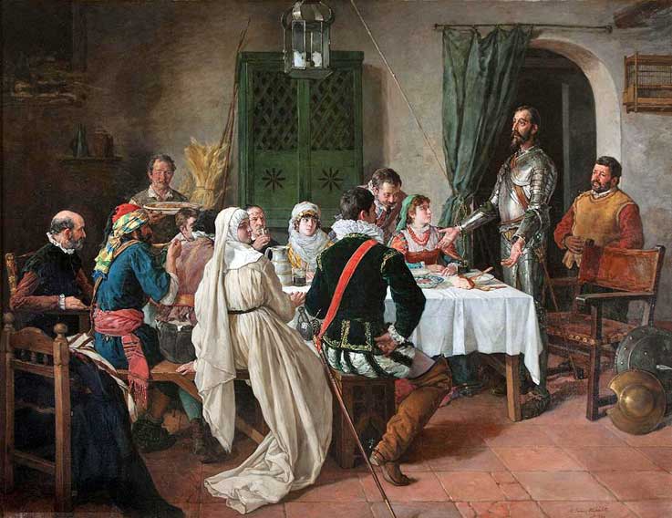 Discurso que hizo don Quijote de las armas y las letras (1884) Museo del Prado. depositado en el Museo de Ciudad Real Gracias al mecenazgo de Ignacio Muñoz de Baena fue pensionado a Roma, desde donde siguió enviando obras a las Exposiciones Nacionales. En 1878 obtuvo la cruz de Carlos III por su obra Obrador de modistas. Fue miembro fundador de la madrileña Sociedad de Acuarelistas y concurrió con asiduidad a las exposiciones anuales de la asociación. Fue profesor de la Escuela de Artes y Oficios de Madrid y restaurador del Prado al tiempo que se dedicaba a la litografía. .- Murió en Madrid, un 26 de Diciembre de 1898 .-