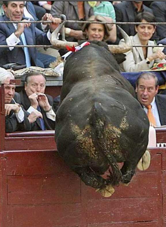 toro de la tarde tomó impulso y se abalanzó sobre el callejón