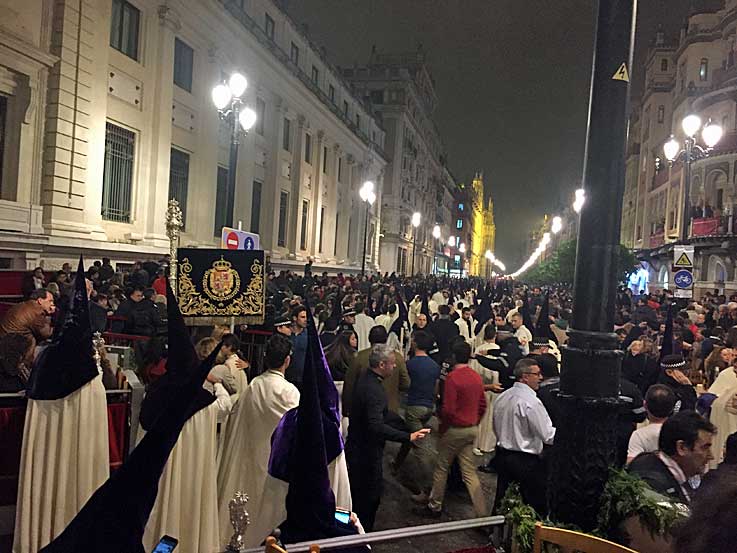 Los primeros tramos de la Macarena estaba en la Avenida de la Constitución, cuando se oyó un ruido indescriptible, que quizás recordara al de un avión aterrizado que iba a menor a mayor, lo que motivó , que los nazarenos se volviera a toda carrera sobre sus pasos y del público que estaba en la silla de querer salir de allí. Fue una especie de efecto "ola" de campo de fútbol, pero todo quedó en un amago de avalancha . Se hizo la calma , con llamadas al orden de la serenidad de la policia , y la procesión se reanudo , entre muestras de apoyo del publico con aplausos .- El o los que que provocaron esto, al ver que no alcanzaba su objetivo, lo repitieron en espaciados intervalos hasta tres veces mas de los mismo en la zona de García de Vinuesa a Plaza San Francisco,. El último sonó como si procediera en los aledaños de la parte trasera de los palcos por la acera de la antigua Audiencia . Todo tenia el mismo patrón , extraño sonido y amagos de avalancha, que mientras mas se repetían, menor era el intento de la gente por correr .- Hubo un cuarto que se produjo estando el palio del Calvario ya en la Avenida, viendo un servidor un grupo de policías locales a la carrera, y regresando al Ayuntamiento don dos detenidos fuertemente escoltado .- Ejemplar el comportamiento de los cuerpos de nazarenos y demás integrantes de las cofradías afectadas, ejemplar el comportamiento de la policía con llamadas a la calma, y ejemplar el público en todo momento se mantuvo en su sitio apoyando a las cofradías con sus vítores y aplausos. - Hasta ahí les puedo contar, lo que viví en primera persona .- Hablar de gamberrismo, carreritas y delincuencia común, es quizás quedarse corto. Hablar de terrorismo de baja intensidad quizás sea muy fuerte , quédense en la mitad del camino. Según me comenta amigos que los vivieron en primera persona, el primer incidente fue simultaneo en diferentes puntos del casco histórico de Sevilla afectado a otras Hermandades y también hubo repeticiones, que ellos vivieron y padecieron .- Esto es un ataque a nuestra Semana Santa, un ataque a nuestra Madrugada, y un ataque a Sevilla . Que todo esto no se esclarezca oficialmente, que todo esto no se ataje de raíz, es dañino para la Semanas Santas de Sevilla futuras . - El miedo, los niños vestidos de nazarenos aterrados y llorando, las madres y padres angustiados por sus hijos y viceversa, algunas señoras y señoritas llorando de puro nervios, no es para trivializarlo con un "aquí no pasado nada " o "son cuatro gamberros o niñatos " Todo esto estaba pertechado y organizado .- Sres de Emergencia Sevilla , una cosa es no difundir bulos ( cosa con la que no puedo estar mas de acuerdo), y otra cosa es no informar de una evidencia de lo que estaba pasado en Sevilla en ese momento. La información real ( que no aumentada ) suple al bulo, y tranquiliza a una población atacada y desconcertada .- Uno pasa de la preocupación por la integridad propia y ajena, a la tristeza por ver como se reventaba una noche perfecta, a la indignación contra sus autores por haber sembrado el miedo gratuitamente, y mas en los desafortunados momentos en que vivimos, donde los que los provocaron a todas luces iban buscando hacer mucho mas daño del que consiguieron , y que gracias a que sus víctimas globales que aguantaron el tipo, que nadie salga ahora con la estupidez de la histeria colectiva .- Esa es mi valoración .- |