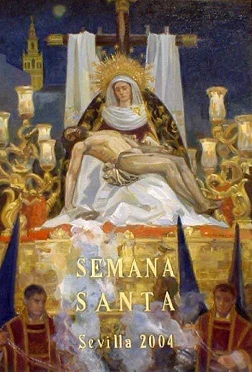 La Coronación de la Virgen Capilla de los Marineros Juan Antonio Rodríguez fue el autor de los dibujos de los paños cerámicos que decoran la fachada de la iglesia del Señor San José de Sevilla (1973). Por lo que respecta a las obras que guardan relación con las cofradías, citar los monumentales lienzos de La Coronación de la Virgen (1965) y Las Animas Benditas del Purgatorio (1964) en la capilla de los Marineros, sede de la Hermandad de la Esperanza de Triana, de la calle Pureza de Sevilla.- Tambien autor de los dibujos de los paños cerámicos añil de la Basílica del Cachorro en Sevilla. Es autor del Paño de la Verónica para la Hermandad de El Valle (Sevilla), realizado en 1991; o la imagen de la Virgen de la Antigua que figura en el «Gloria» del paso de palio de la Dolorosa del Cerro del Águila. Falleció alos 94 años de edad en Sevilla tal dia como hoy el 9 de enero de 2017.- |
