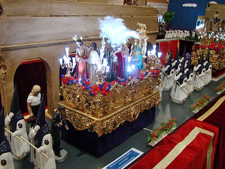En esta muestra se recrean cofradias completas con todos sus pasos, nazarenos, costaleros, acolitos, y ademas monumentos, iglesias, arboles, mobiliario urbano etc , hasta el mas mínimo detalle que hará las delicias de los pequeños ( y de los no tan pequeños ) .-