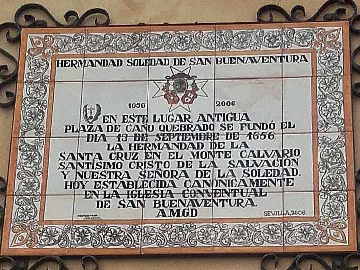 D. Antonio Jimena impenitente paseante por Sevilla, nos remite esta foto del azulejo fundacional de la Hermandad de la Soledad de San Buenaventura , en la Plaza de los Maldonados de Sevilla