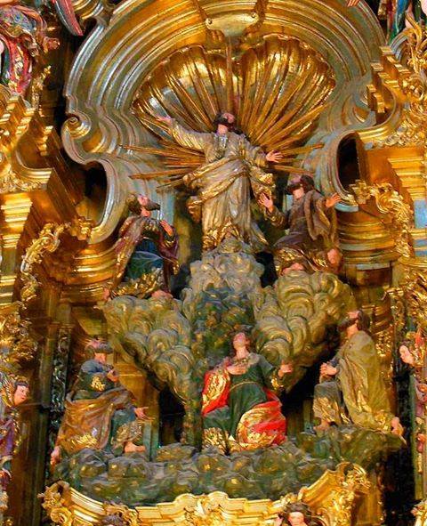6 de Agosto de 2018 Tal dia como 6 de Agosto se celebra la transfiguración de Jesús, es un evento narrado en los evangelios sinópticos según San Mateo, San Marcos y San Lucas. en el que Jesús se transfigura y se vuelve radiante en gloria divina sobre una montaña, como el Salvador .- En estos pasajes, Jesús y tres de sus apóstoles, Pedro, Santiago y Juan se dirigen a una montaña (Monte Tabor o Monte de la Transfiguración) a orar. En la montaña, Jesús empieza a brillar con rayos brillantes de luz, generalmente llamada «luz tabórica». Entonces los profetas Moisés y Elías aparecen al lado de él y habla con ellos. Entonces Jesús es llamado "Hijo" por una voz en el cielo, que es Dios Padre, como en el Bautismo de Jesús.- En la foto superior altar mayor de la iglesia del Salvador obra de Cayetano de Acosta .- |