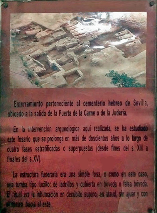 El cementerio judío de Sevilla se extendía más allá, en la acera de en frente, donde está la actual sede de la Diputación Provincial, el entonces Cuartel de Intendencia de la Puerta de la Carne, uno de esos puntos calientes de la Sevilla paranormal según algunos testimonios de los entonces soldados que hacian guardias nocturnas, donde llegaron a ver y oir unos niños muy especiales (por si no lo han pillado me estoy refiriendo a fantasmas ) en la zona del sotano . -