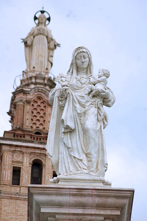 12 de Noviembre de 2019 Por aquello de que antié procesionó por las calles de Sevilla la Virgen del Amparo y tal dia como hoy un 12 de Noviembre de 1948 fue bendecido este monumento funerario que les traigo hoy .- El monumento al Sagrado Corazón de Sevilla es una torre monumental dedicada al Sagrado Corazón de Jesús situado en la vecina localidad de San Juan de Aznalfarache, provincia de Sevilla. Fue construido para albergar los restos del cardenal Segura y de sus hermanos. Proyecto arquitectónico de Aurelio Gómez Millán. Escultura superior de José Lafita Díaz.- Como pueden ver, la Virgen reproduce la Virgen del Amparo de la Parroquia de la Magdalena de Sevilla .- |