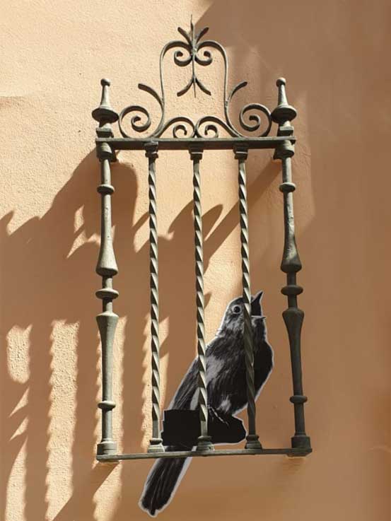 A veces vamos por Sevilla, como siempre les recomiendiendo, mirando mas que un borrico atado a un tapia , y nos encontramos con cosas curiosas que en algunas ocaciones no necesariamente , son monumentales o históricas, sino cosas simplemente curiosas como este trampantojo simpático de pajaro enjaulado en una reja pegada a una pared, donde en otro tiempo habría una ventana . ( Ver otros trampantojos ) .-