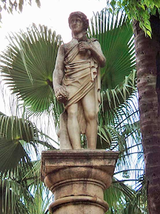 Para finalizar, nos encontramos con una tercera alegoría escultórica en la mas que deteriorada Glorieta de Perú, frente al que fuera Pabellón de Perú de la Exposición IberoAmericana de 1929 , donde vemos a un joven portando un racimo de uvas representado al Otoño .-