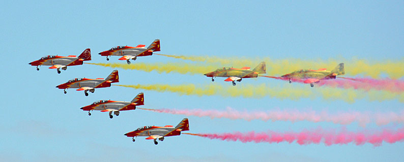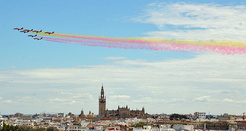 22 de Abril de 2020 Ayer 21 de Abril de 2021 fiesta local en Sevilla hubo un exhibición de la Patrulla Águila por el cielo de Sevilla .- Siete aviones de la patrulla acrobática de la Academia General del Aire de San Javier, en Murcia, sobrevolaron la ciudad desplegando como es habitual en sus actuacioes la bandera de España siendo una actividad organizada por el Acuartelamiento Aéreo de Tablada .- Aqui les dejo unas cuantas instantaneas y video : |