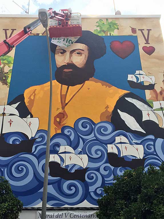 17 de Junio de 2021 Los mismo que en su día les traje aqui MURAL SANTANDERINO DE LA RECONQUISTA DE SEVILLA , y MUSEO EL POLIGONO . Hoy les traigo este simpatico mural de grandes proporciones de la vuelta al mundo sobre la fachada de un edificio de cinco plantas de Sevilla, concretamente en la calle Tarifa, paralela a la Avenida de la Raza . Hecho por la muralista Alexandra del Bene. El mural, reflejan episodios de la expedición de Magallanes- Elcano .-