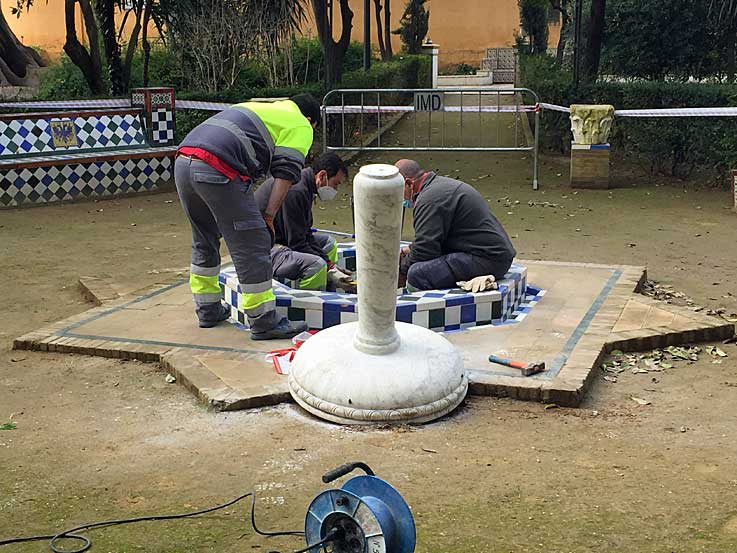 3 de Febrero de 2020 Hace un par de días unos cabestros y/o/u cabestras ( por aquello del lenguaje inclusivo ) , estaban pastando y abrevando, que es lo que hacen los animales, en esta glorieta de los Jardines de Murillo decorada con azulejos de José Mensaque Vera ; al final algunos o algunas se tuvieron que enrredar con los cuernos con esta fuente y la arrancaron de cuajo de su ubicación . Afortunadamente la cosa no ha tenido que ser muy grave, pues ayer rara avis, los empleados municipales ya estaban procediendo a su reparación ( creo que Iker Jimenez les va a dedicar a este fenomeno alguna sección en el próximo Cuarto Milenio ) pues aquí cuando destrozan alguna escultura , pasan meses e inclusos años para que la repararen .- Esto que ven aquí, es solo fruto del abandono y la nula vigilancia de nuestros parque y jardines que le dejan el campo abierto a los gamberros y gamberras que hartos de botellona y de porros, les da por destrozar lo que encuentran a su paso . - Por cierto esta glorieta, como aparece en algunos mal informados medios, no está al lado de la de Garcia Ramos , pues esta última se encuentra a la derecha al otro lado de la calle que conduce a la Plaza de Santa Cruz .- Lo que volvemos a ver es solo un suma y sigue , pues la fuente que está en linea recta a esta, en dirección al barrio de Santa Cruz, fue destrozada hace poco tiempo a principios de Septiembre de 2020 ( VER ).- Esta pobre glorieta tiene el cenizo, pues en agosto de 2016 , fue igualmente atacada, pero en esta ocasión a los cabestros y cabestras no les dió por la fuente, destrozaron otros elemntos decorativos, y dejándolo solo llenos de basura y cagajones, que es lo que hacen los animales ( VER ) .- Esto es predicar en el desierto pues lo que es importarle , importarle, no le importa a nadie y menos a nuestro ayuntamiento , pues simplemente no da votos , Lo único bueno es que gracias al coronavirus no hay turistas, y no ven el estado de degradación de nuestro ajardinado patrimonio que llegó a ser escenario de la serie de culto "Juego de Tronos", y uno de las mejores reclamos turisticos para nuestra ciudad, a los que nosotros respondemos con el descudio y no vigilancia .- Hasta el próximo .- |