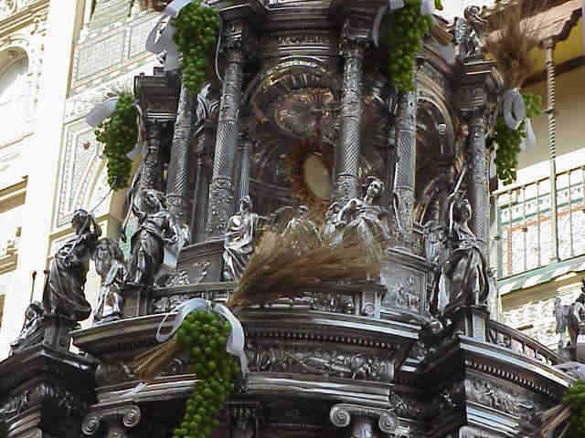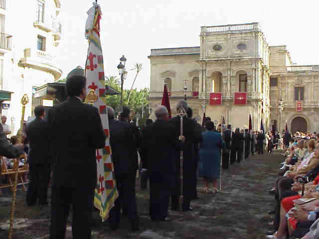 LA CUSTODIA LLEGA A LA PLAZA SAN FRANCISCO AL FONDO EL PASO DE LA HINIESTA CORONADA |