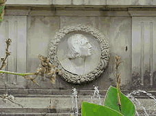 En medio de las dos columnas una carabela, con los nombres de Isabel y Fernando, y en su basamento rodeado por la fuente , aparece en uno de sus lados un medallón de Colon y en el otro extremo el escudo de los Reyes Católicos.Este enorme monumento que tiene una altura de 23 metros esta firmado por el arquitecto Juan Talavera y el escultor Lorenzo Coullaut Valera, autor del León y del retrato de Colón .- Existe una broma popular, cuando uno hace de cicerone ( o el tonto ) enseñándole Sevilla, a amigos, familiares deudos o afectos, foraneos todos ellos , y exclama:"Y aqui podeis ver el monumento a Colón ", inexorablemente hay alguien ,con botellita de agua en la mano incluida y con cara de curiosidad fundada y por asociación de idea con el monumento a Colon en Barcelona pregunta :"¿Y donde esta Colon?", la respuesta es fulminante: "A Colon se lo comió el león".- |