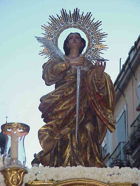 SANTA LUCIA CON SUS EMBLEMAS LA ESPADA Y EL PLATO CON LOS OJOS