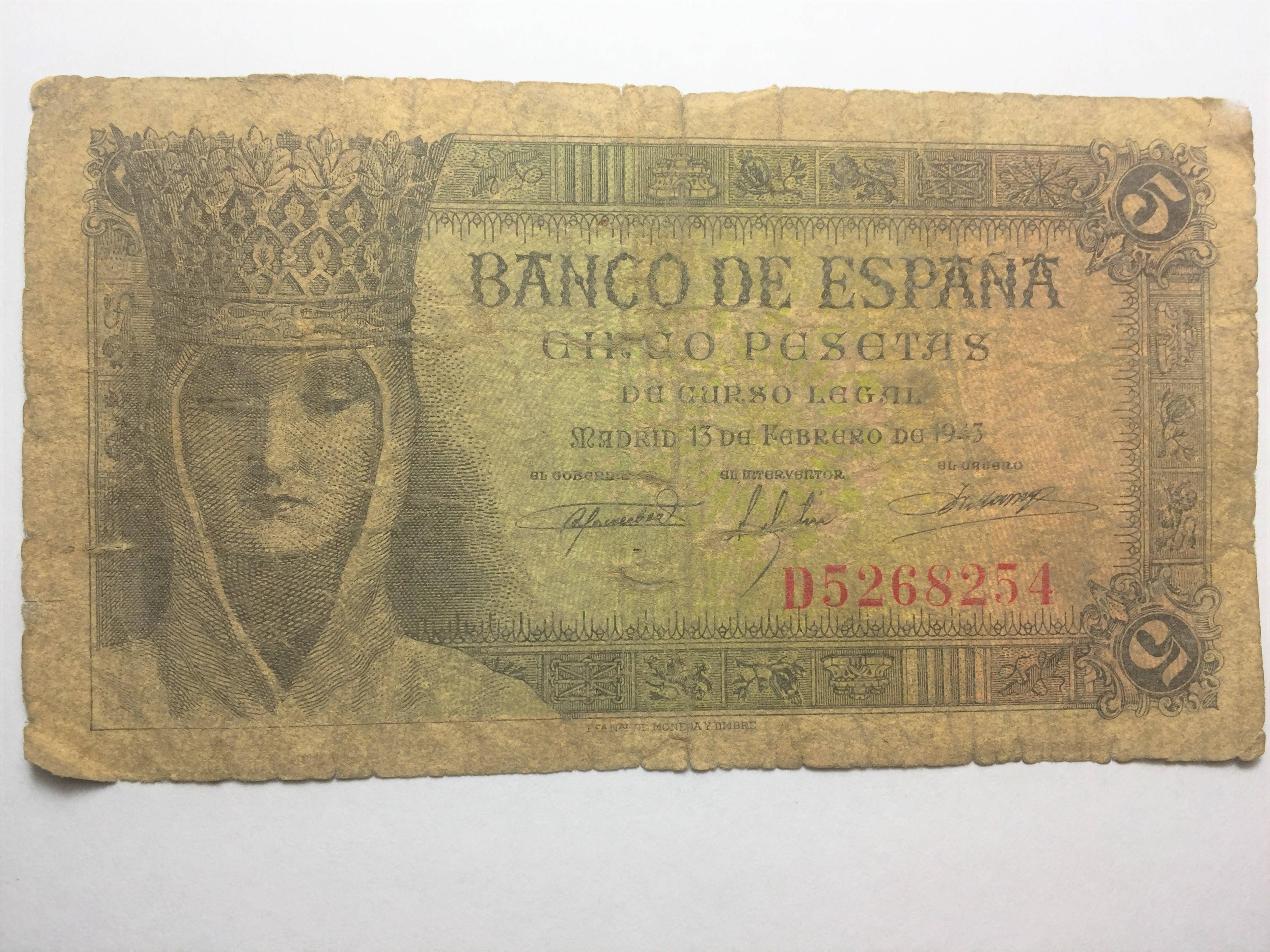 BILLETE 5 PESETAS 13 FEBRERO DE 1943