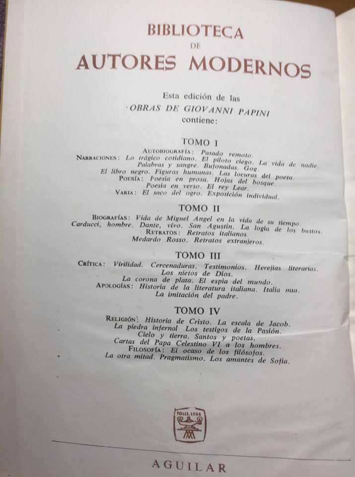 GIOVANNI PAPINI BIBLIOTECA DE AUTORES MODERNOS 4 TOMOS AGUILAR