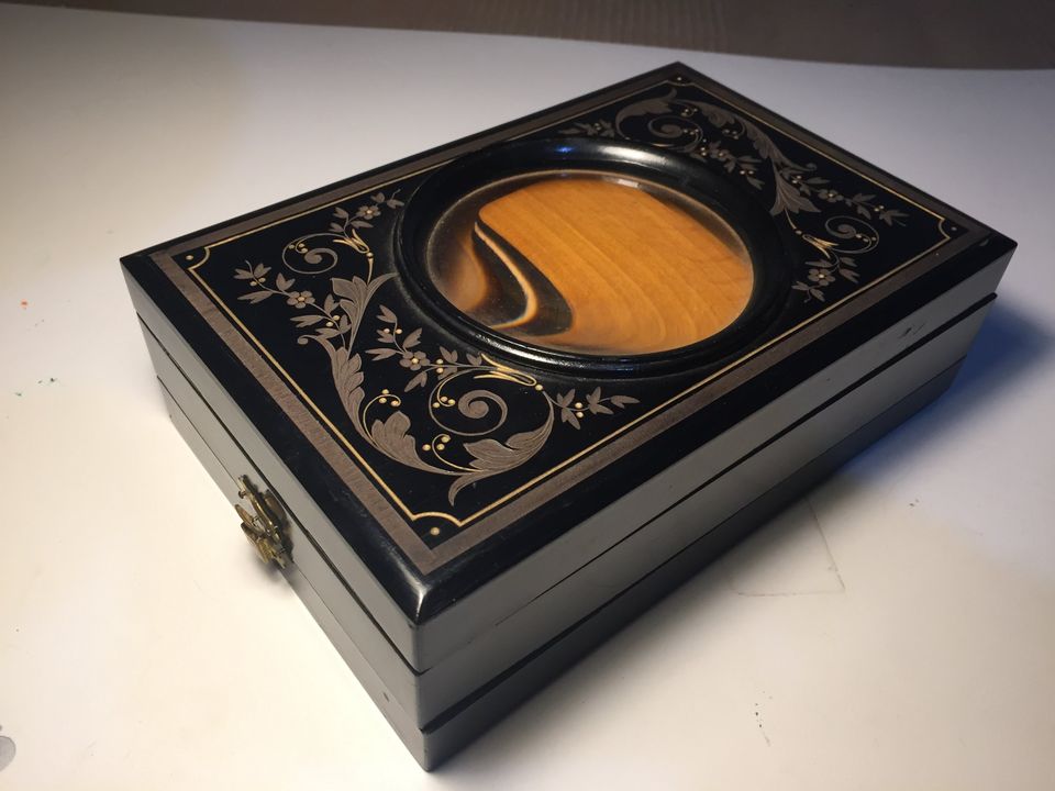 EN MADERA EBONIZADA CON GRAN DECORACION FLORAL TALLADA EN EL FRONTAL