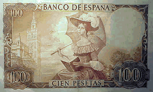 Aqui tenemos el reverso de un billete de 100 pts