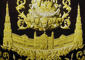 La Hermandad del Rocio de Sevilla Sur , siempre nos impresiona esta autentica filigrana de "maqueta" bordada en oro de nuestra Plaza de España, que para aquellos que hemos tenido la suerte de verlo de cerca esta bordado hasta el mas minimo detalle por los talleres de sobrinos de Esperanza Elena Caro en 1986.- |