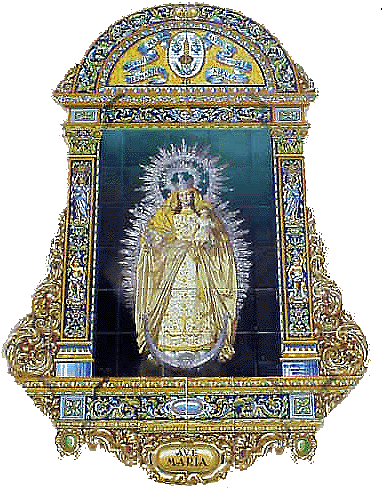 Soberbio azulejo de la Virgen de la Nieves obra de prólifico y genial Antonio Morilla Galea en 1957 en la fachada de Santa Maria la Blanca ......y no me he equivocado de foto con respecto al titulo |