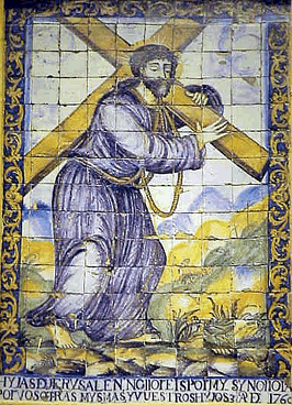 ante el mas antiguo azulejo cofradiero ubicado en una fachada exteriro