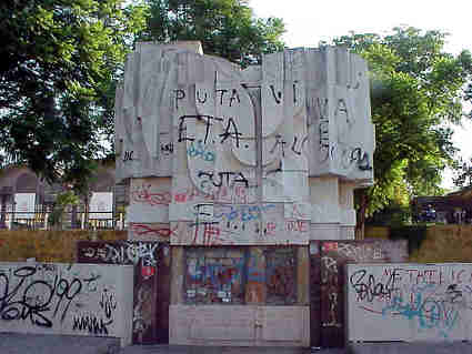 Sevilla que es muy agradecida con sus hijos ilustres ( recientemente le han dedicado un azulejo a la Pantoja ) Bartolome de las Casas cuenta en nuestra ciudad con varios monumentos . En las dos fotos anteriores tras las pintadas, tras las meadas, tras los critales de la botellona, casi no se puede ver este monumneto dedicado al defensor de los indios , ubicado en la orilla del Guadalquivir a los pies del antiguo Barranco y frente al Puente de Triana .y no se extrañe usted de no haberlo visto antes , pues no está precisamnte a mano La obra la componen unos relieves sobre bloques de piedra donde se puede apreciar al obispo de Chiapas , en el centro ( el que esta con la cara con una pintada en azul )y a ambos lados soldados españoles y al otro lado los indios .- En la siguiente foto se puede apreciar el reverso del monumento y su "perfecto estado" de conservación, donde incluso faltan trozos del mismo y es tomado por un tapia para realizar todo tipo de pintadas .- Este desdichado y maltratado monumento es obra de Emilio Garica Ortiz y fue inaugurado en 1984 coincidiendo con el quinto aniversario del nacimiento de fray Bartolome. Y que digo yo que aprovechando lo de la beatificación podrian limpiarlo o aun mejor colocarlo a diez metros del suelo a salvo de los vandalos y alanos de la movida ribereña .-
