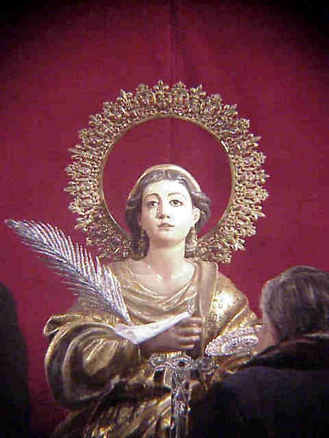 SANTA CATALINA CON UNA AUTENTICA AVALANCHA DE PUBLICO QUE DEVOTAMENTE ASISTIA AL BESAMANOS DE SANTA LUCIA. PARA SI QUSIERA ESTA AFLUENCIA