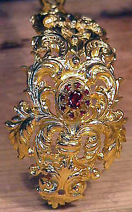 Detalle de la parte superior del canasto donde tambien llega piedras preciosas como rubies como vemos en la imagen