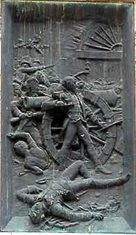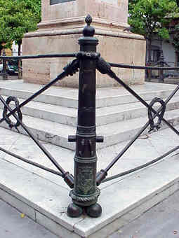 Ahora que mis niños de la Logse medio se nos han situado pasemos al monumento fechado en 1889 obra del insigne escultos Antonio Susillo Fernandez y de los arquitectos Francisco Aurelio Alvarez y Jose Solares Garcia .- Todo el conjunto estatua,de mas de 3 metros y medio de altura , bajorelieves y cañones que rodean al monumento fueron fundidos en nuestra Fabrica de Artilleria de Sevilla .- Es de destacar los hermosos bajorelieves que representa la escena del heroico combate asi como la agonia de Daoiz y que se pueden ver una replica de los mismo en la Fabrica de Artilleria .- Los cañones que forma la verja del monumento, replica de los usados en aquel histórico dia , si se fijan en cada uno de ellos aparece los apellidos de todas las personas que intervinieron en la consecucion del monumento , asi como gravado en uno de ellos el dia y autoridades de su inauguracion .- dentro de sesi años se cumplirá el bicentenario de esta gesta donde hombre y mujeres nominativos, como Daoiz, Velarde, Agustina de Aragon, el Palleter y tanto otros anonimos, con la suma de sus heroicidades individuales lograron librar a España de la invasión francesa .- Correo con el autor ardoju@hispavista.com