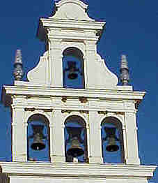 Sevilla 9 de Mayo 2002 Les contaré un par de pequeña curiosidades para que la tengan presente este año cunado esten frente a la ermita de la Virgen del Rocio .- LAS CAMPANAS En primer lugar si levnatan la vista hacia la espadaña contemplarán cuatro campanas que el lunes de Pentecostes, repicaran a los cuatro vientos anunciando la salida de la Reina de las Masrimas . Estas campanas tiene nombre a saber : Lirio de las Marismas, San José, El Salvador y Blanca Paloma .- Estas fueron colocadas en 1981 , aunque se conservan algunas de la ermita anterior fechadas en 1883 .-