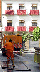 Sencillamente ejemplar el servico de limpieza de Lipasan . Todo un despliegue de logistica, sabiendo estar en todo momento, sin hacerse notar, sin incomodar, y manteniendo Sevilla casi en tiempo real limpia como una patena.- Daba igual dias, y horas, todo estuvo en perfecto estado de revista y curiosamente no necesitaron refuerzos de jovenes con chalecos sin manga fosforecente color amarillo rotulador. Siempre hay alguien que tienen que trabajar duro para que otros se diviertan .- Olé por los barrenderos de Sevilla .- |