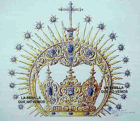 ![]() LA CORONA DE ORO DE LA VIRGEN DEL VALLE 30 de Junio 2002 20h 45 min Un hermano del Valle leyó el otro dia las Cronicas Julianas donde hablaba de El secretismo del Valle pues bien este hermano que prefiere permanecer en el anonimato me ha enviado el proyecto de la corona de oro de la Virgen del Valle , para que sea conocidos por todos los sevillanos y no sevillanos devotos del Llanto del Jueves Santos .- Ustedes pedonen que haya marcado el dibujo con las letras de esta web , para evitar malos entendidos a posteriori no deseados . Es el primer dibujo en la red publicado de este proyecto que como tambien les adelantaba guarda un gran parecido con la actual corona con la que procesiona la Virgen .- Pronto este dibujo de papel será una hermosa realidad que podremos