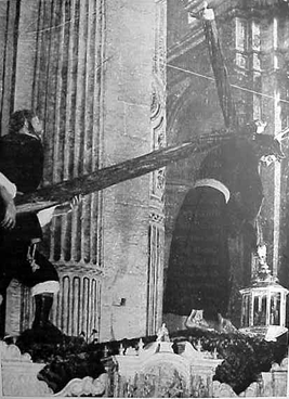 1941 procesionara sobre unas andas; posiblemente las mas usadas en traslado,