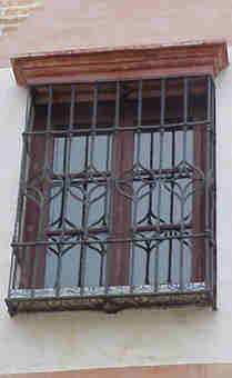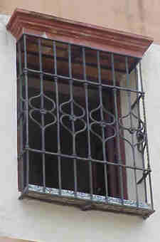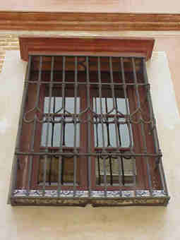 Sevilla 20 de Junio 2002 Puesto que nuestra amada Sevilla en estos dias de holganza y cumbrosas nos la han puesto a la pobre enjaulada, , cercada y enrejada, hoy vamos a hablar de rejas .- No hay duda que si el alma de Sevilla se volviera de hierro sería una reja forjada y hoy una vez mas La Sevilla que no vemos, es mas no vemos que nunca, pues las imagenes que traigo aqui estan en plena calle a la vista y posiblemente mas de un propio o foraneo no ha reparado en ellas .- Nos situamos en la calle Levies , en pleno corazón de San Bartolome donde el 3 de Marzo de 1627 nació Miguel de Mañara Vincentelo de Leca, en esta casa que comprara su padre cuatro años antes .- Don Miguel de Mañara que fue todo un personaje digno de toda uan novela de capa y espada, licencioso , mujeriego y pendeciero ; de pronto le dio a su vida un giro de trescientos sesenta grados y fundó el Hospicio y Hospital de la Santa Caridad, entregando su vida , hacienda y fortuna al cuidado de los pobres y menesteroso e incluos abandono su casa y se marcho al hospital donde murio con fama de santidad el 9 de mayo de 1679 .- Pues bien en esta impresionate casa-palacio sita en la recoleta calle Levies entre otras muchas cosas dignas de la mas detenida observacion tiene la mayor colección de rejas que hay en una casa sevillana .- Concretamente en us fachada hay dieciseis de las que descontamos las cinco inferiores que son basicas y rudimentarias pues de las once restantes, diez son completamente diferentes , algunas de gran bellezas y todas estan en la misma fachada .- Observé y comparelas en este alarde de