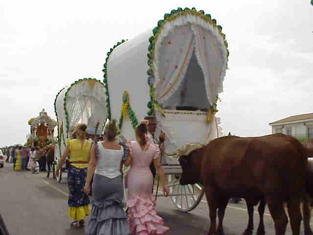 Hoy cuando Triana entre en su capilla, el Rocio habrá finalizado, como cuando la Soledad cierra tras ellas sus puertas de San Lorenzo. Atrás quedarán un año mas el mayor movimiento mariano y mariologico no solo de Andalucia sino de España, donde han ido provincias de Andalucia con casi todos sus pueblos, todas las capitales de esta y una importante representacion de las del resto de España .- Es curioso que se habla del imposible millón de personas ( en toda Sevilla no hay esa cifra ) pero se han parado ustedes a pensar ¿cuantas salves se han rezado ?, ¿ante cuantas iglesias, ermitas o monaterios las carretas del simpecado se han parado?, ¿cuantos gritos a la Virgen del Rocio hasta llegar a la afonia se han dado ?, ¿cuantos rosarios bajo la luz de las estrellas se han celebrado ? o ¿cuantas misas entre mantas,y olor aa leña y cafe recien hecho se han oficiado?. ¿cuantos Angelus se hna rezado orillados en los caminos ?,¿de eso no hay estadistica ?.- Uno lee los datos del Plan Romero 2002 y le entra la risa tonta al ver que gracias a Dios y a la Virgen del Rocio los percances y asistencias han sido una gota de agua entre ciento de miles de personas en movimiento y aun mas cuando hay esas mismas cantidades de vehiculos de traccion mecanica o animal tambien en movimiento en incluso algunso de estos son imprevisibles . Creo que deberia de haber un Plan Romero Devocional, que nos responda a las preguntas del parrafo anterior .- Los autores de Informe Cingulo deberian de hacer un Informe Zajones , con la tranquilidad de que aqui no hay problema de mujeres nazarenas, las mujeres si pueden ser rocieras ( a Dios gracias ) y apostarse en Palacio o en el Quema o el Ajoli y sin esos horibles chalecos amarillos modelo rotulador fosforescente , preguntar ¿Oiga usted por que y para que viene al Rocio ?, ¿Por que viene usted detras de una carreta andando?, ¿Por que llora usted mas que Bustamante cada vez que llega a uno de los enclaves emblematicos del Camino ?, ¿Por que cruza usted el Quema delcaszo con la mierda que lleva ?, ¿Como atraviesa el infierno d euna nube de polvo de la Raya a las cuatro de la tarde? Creo que seria interesante escuchar los motivos y las respuesta .- Como decia la letra de otra maravillosa sevillana Dile a los vientos vecinos que no hay camino de vuelta //No puede volverse atrás, aunque los tiempos se vuelvan//. Señores el Rocio 2002 se ha terminado y ya queda menos para el proximo. Que se os pase pronto la depresion postrociera que tambien la hay y no saben ustedes como .- !Viva la Virgen del Rocio!