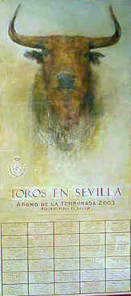 Cartel Plaza de Toros de Sevilla (Maestranza ) para la temporada 2003. Autora Carmen Laffón Cartel souvenirs taurino |