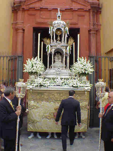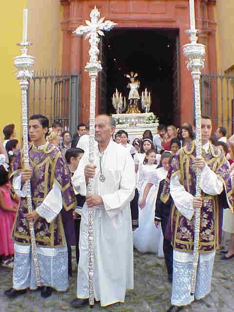 LOS NIÑOS DE COMUNION DELANTE DEL PASO DEL NIÑOS JESUS PORTADO POR NIÑOS