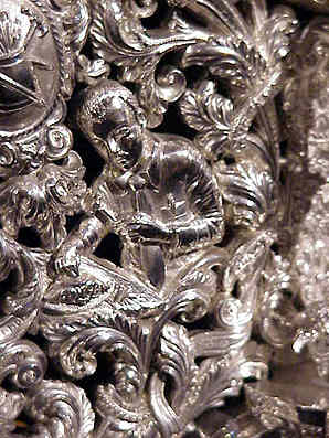 ¿Lo sabian?, ¿lo han adivinado ?; pues se trata de los impresionantes respiradores de la Virgen de la Merced de la Hermandad de Pasion obra de mis admirados y siempre geniales hermanos Delgado , unos respiradores que son todo un mundo por descubrir y que cada centrimetro guardan algo distinto .- Este señor que aqui ven con su camisa