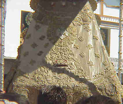 Va desde la cabeza de la Virgen hasta la peana, sostenido por un armazon