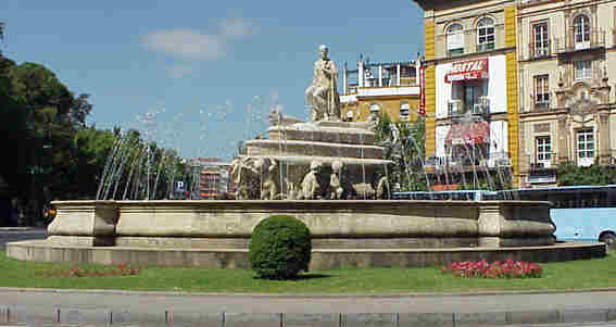Hoy nuestros pasos nos han llevado a la Puerta de Jerez , en cuyo centro esta , como la bautizara Antonio Burgos la Cibeles sevillana pero sin leones, donde el equipo del Sevilla F.C cada vez que tiene un exito deportivo van alli a celebrarlo ( este año podria haber sido jugar la UEFA, pero mejor olvidarlo )