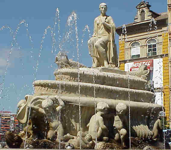 Alrededor de esta maravilloso grupo habia cuatro niños con caracolas ,por lo que popularmente era conocida ne Sevilla como La Fuente de los Meones ( con perdón) , pero esta fuente fue victima de un desmontaje en los inicios del metro , ya que una de las zonas de propeccion era la Puerta de Jerez y cunado volvieron a montrala por lo visto los cuatro niños de la caracolas o se perdieron o se rompieron o vaya usted a saber .-
