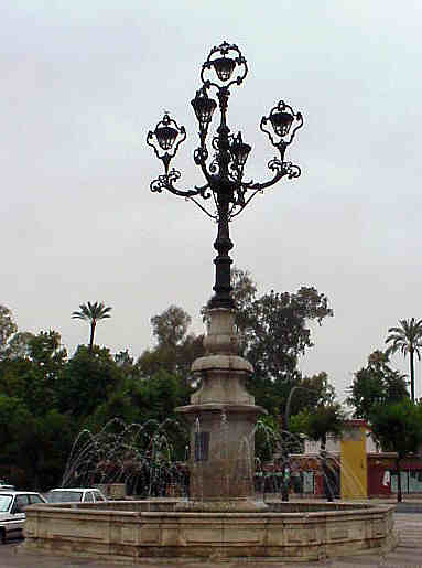 Como decia entonces era una farola monumental que daba entrada al actual Avenida de la Palmera, entonces llamada Avenida de la Reina Victoria e iluminaba una de la entradas a la Exposicion Ibero Americana. Y alli estuvo hasta 1972, fecha en que fue trasladada a su ubicacion actual entre las Avenidas de Malaga y Cadiz , frente por frente a los encarcelados Jardines de Murillo y es aqui donde se le coloca un brocal y pasa a convertirse en una Farola-Fuente. tal como ven en la imagenes .-