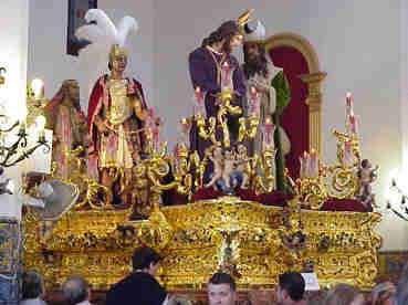 NOTAS ACLARATORIA Se han leido tanto en la red como en papel cosas raras que pueden invitar a la confusion y que paso a aclarar .- El paso de misterio de la Sagrada Lanzada es obra de Luis Jimenez Espinosa en 1949 y estado haciendo su labor de aprendizaje Guzman Bejarano logicamante colaboro en dicha obra .- El paso de la Quinta Angustia entre otra cosas es de bronce ,proyecto de Pedro Dominguez y dirigida su ejecucion por Jose Gestoso fechado en 1904 . Don Manuel Guzman Bejarano restauro la partes de madera de cedro del mismo saneando y ampliado en 1978.- El paso de misterio de los Servitas no es de 1981 sino de 1979 .- Hay una cosa peor que la ignorancia y es copiar al que ignora y encima mencionarlo como fuente